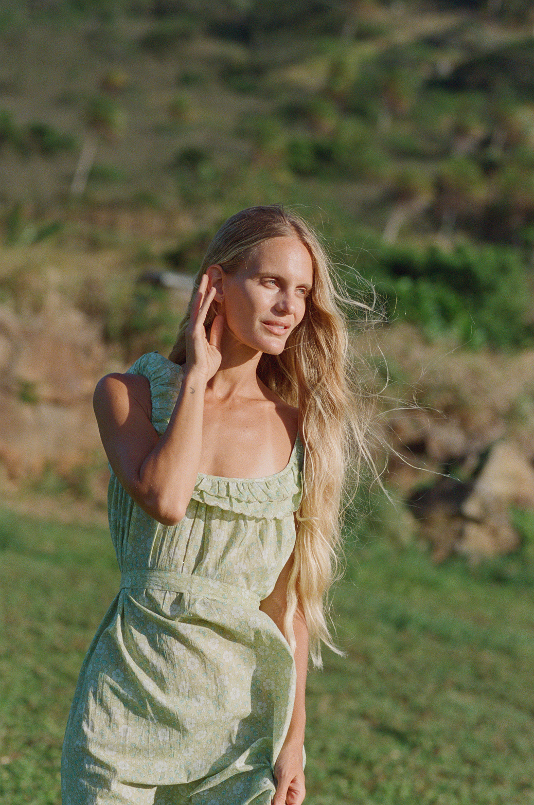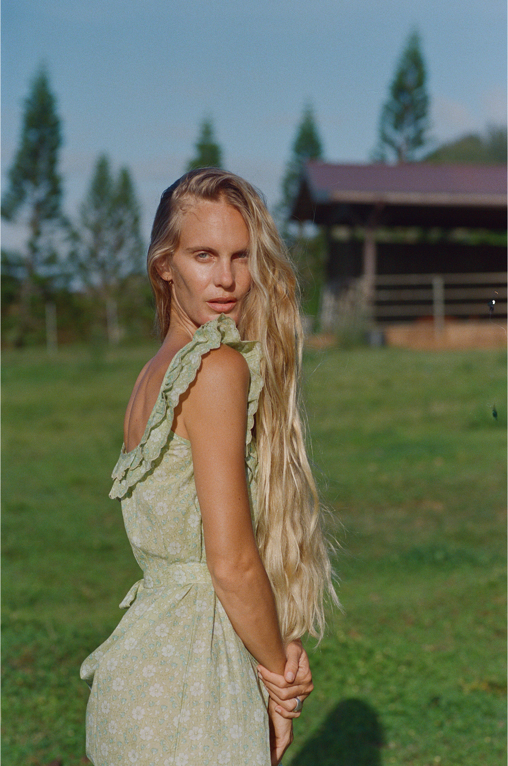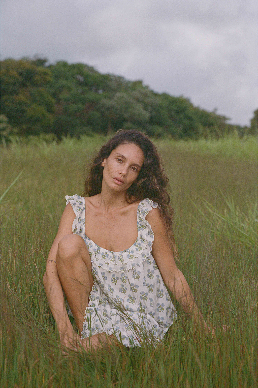 Crafted in a light organic cotton voile, the Malia Dress features a low scoop back and open neckline, finished with delicate scallop ruffles along the neckline and hem. Wear it loose for a relaxed silhouette, or style with the optional belt for a defined waist.