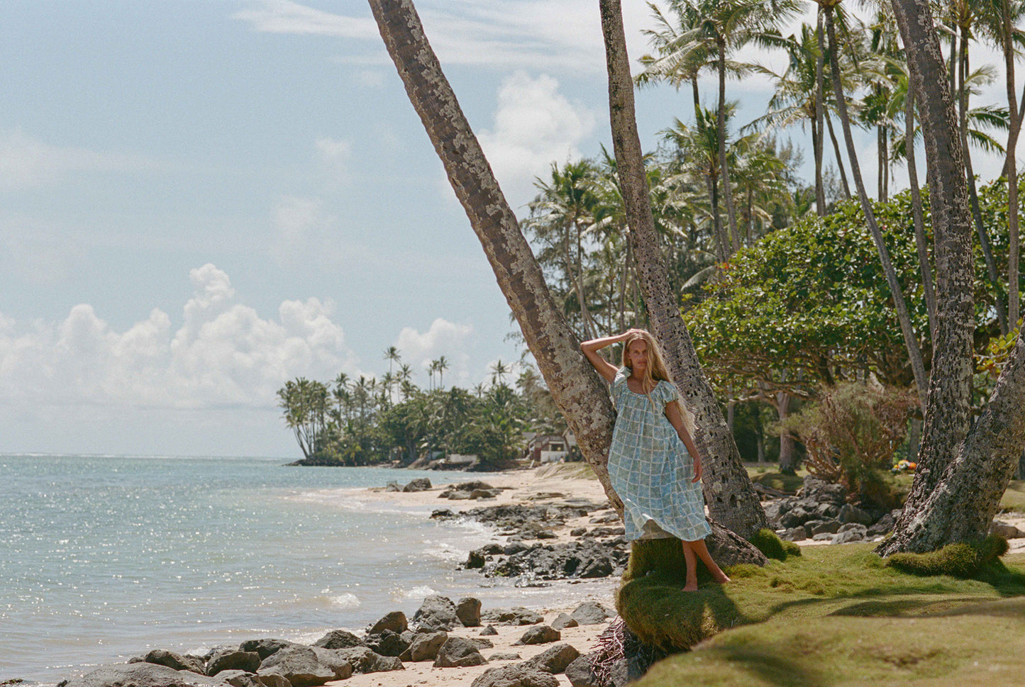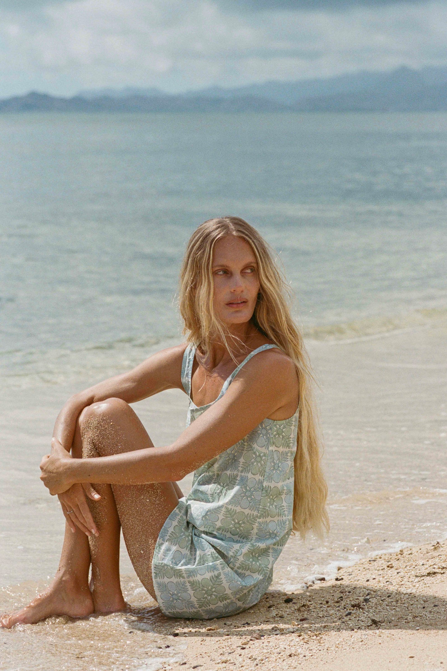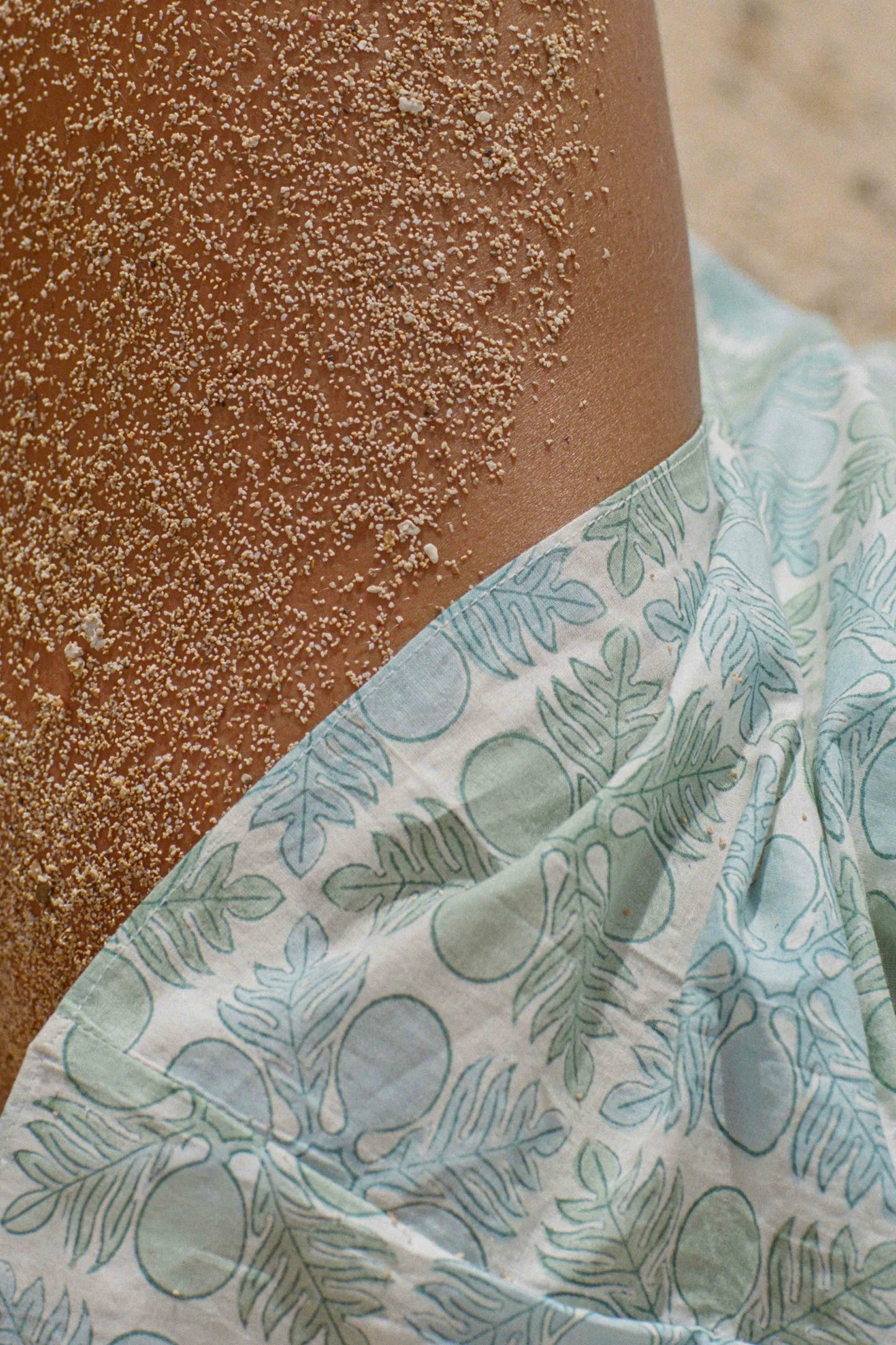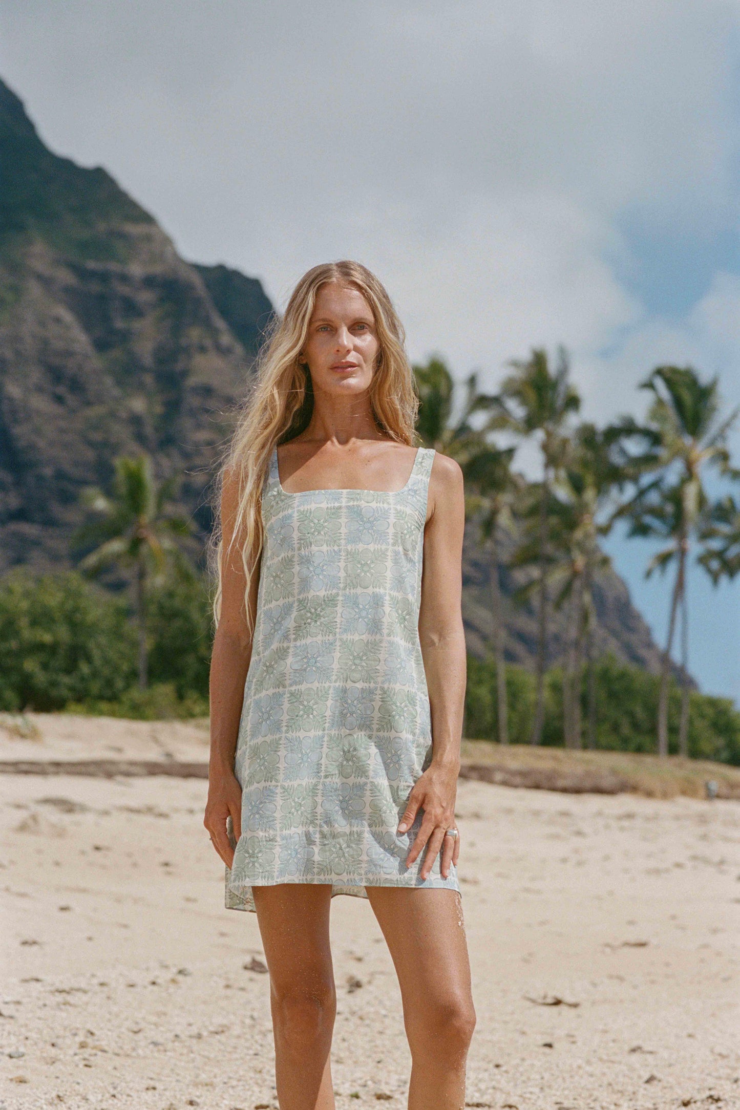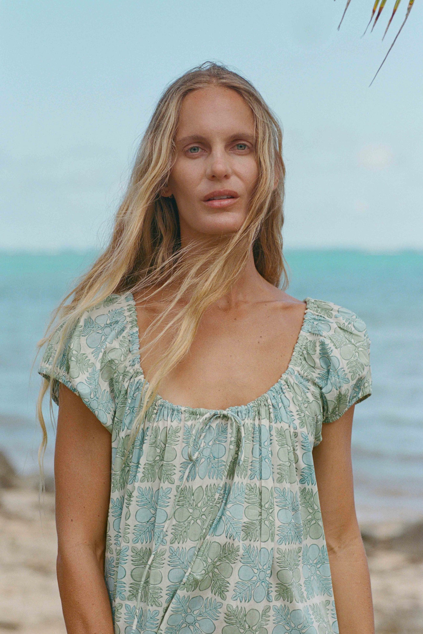 Our beloved ‘Ulu print returns in soft aqua and turquoise tones drawn from the Pacific. In homage to traditional Hawaiian quilting, we’ve scaled the motif slightly larger to honor the strength and spirit of the prolific ‘ulu tree - an enduring symbol of growth and well-being.