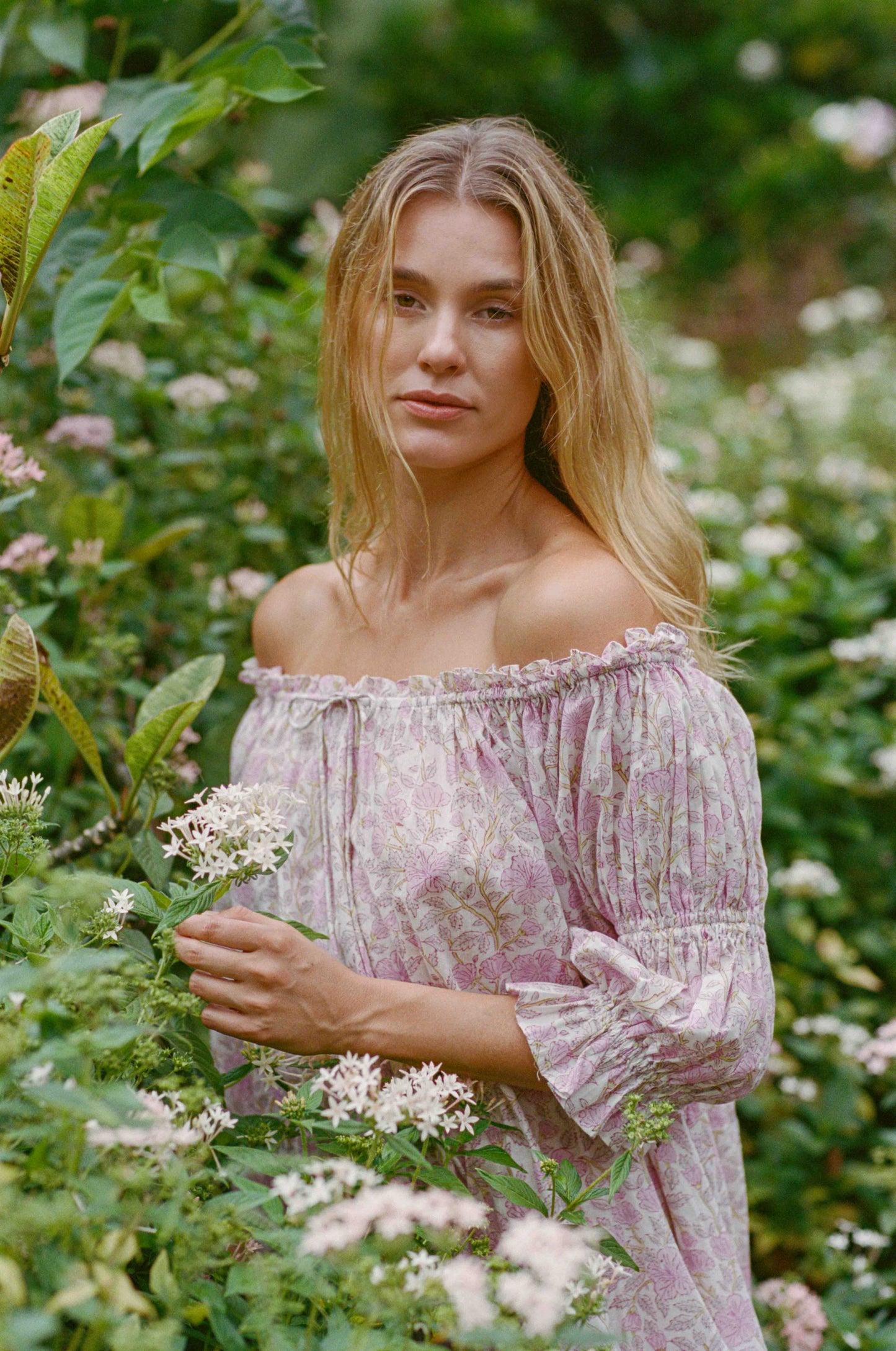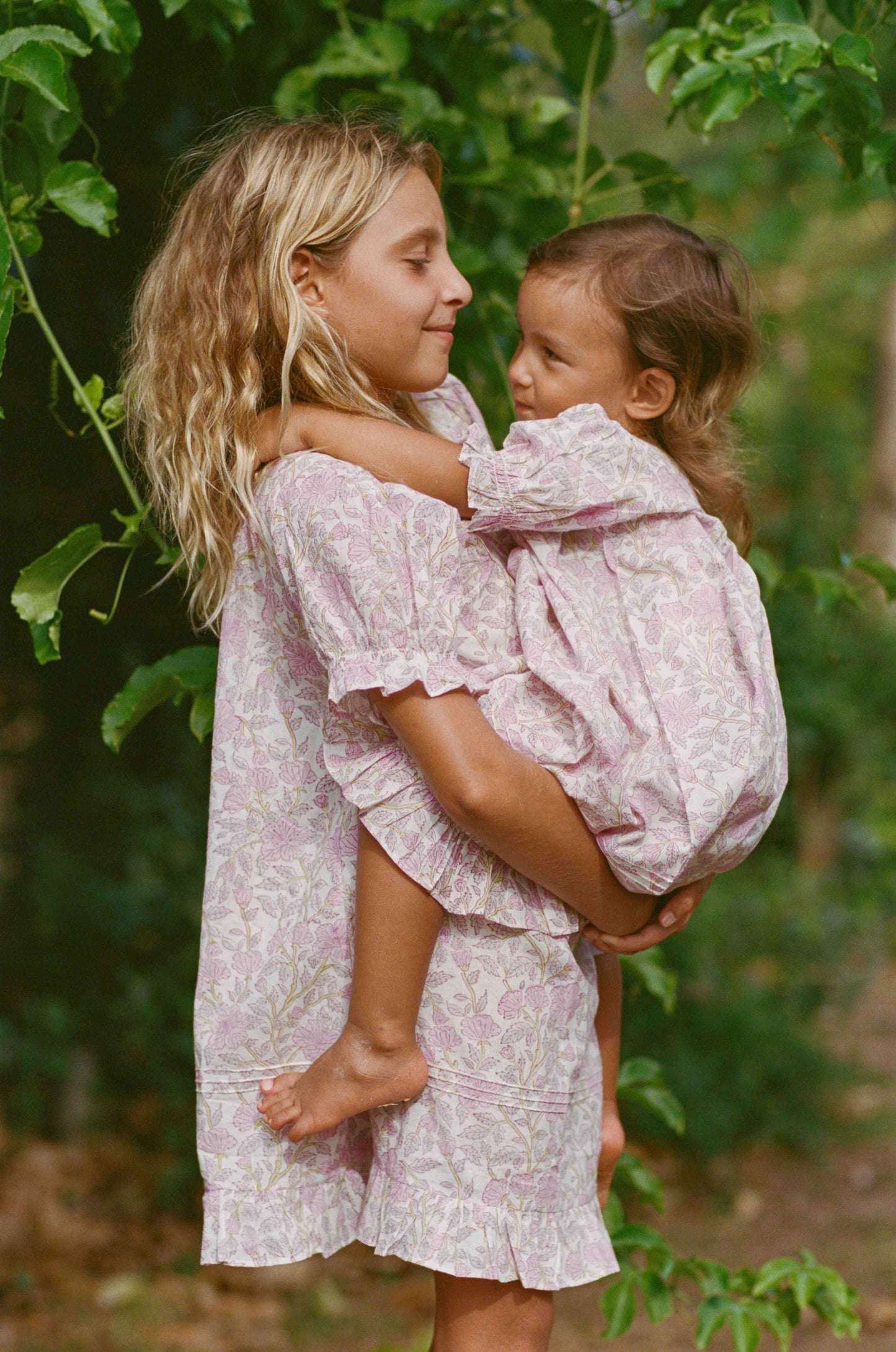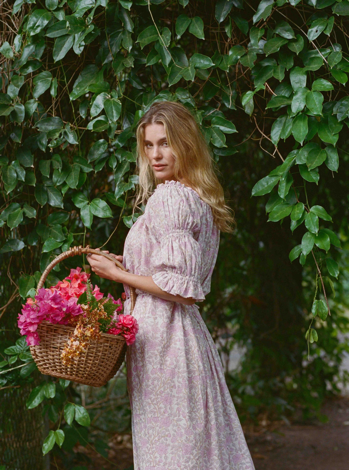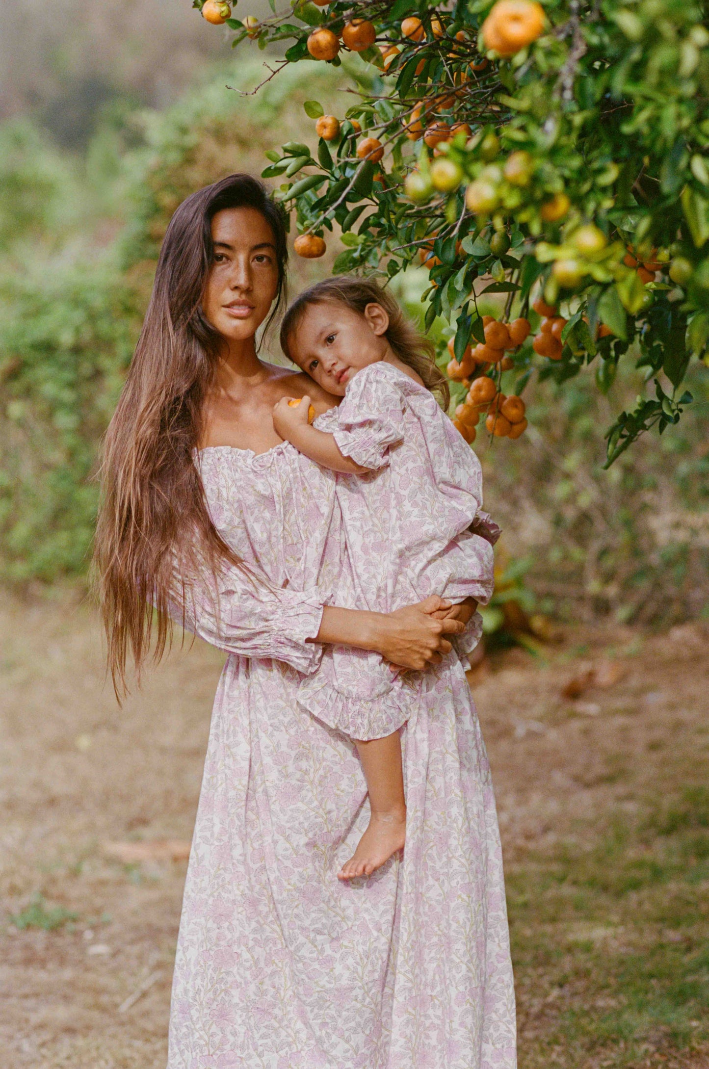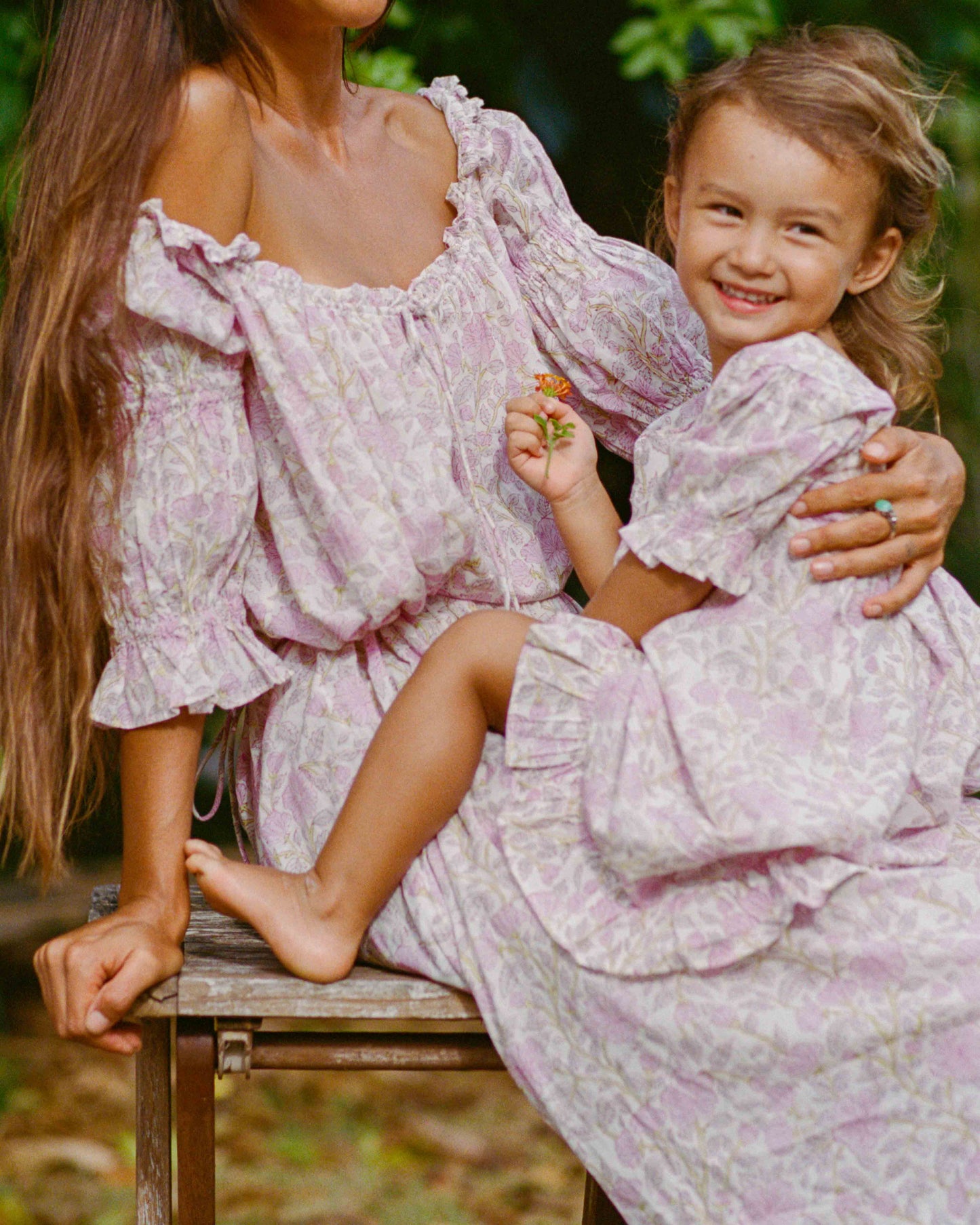 Bathed in the glow of the Pacific sun, our Lilac Oiseau print celebrates the vibrant hibiscus, with its oversized blooms block printed by hand into an elegant tapestry. Its soft lilac hues whisper of Hawaiian royalty, spirituality, and wisdom.