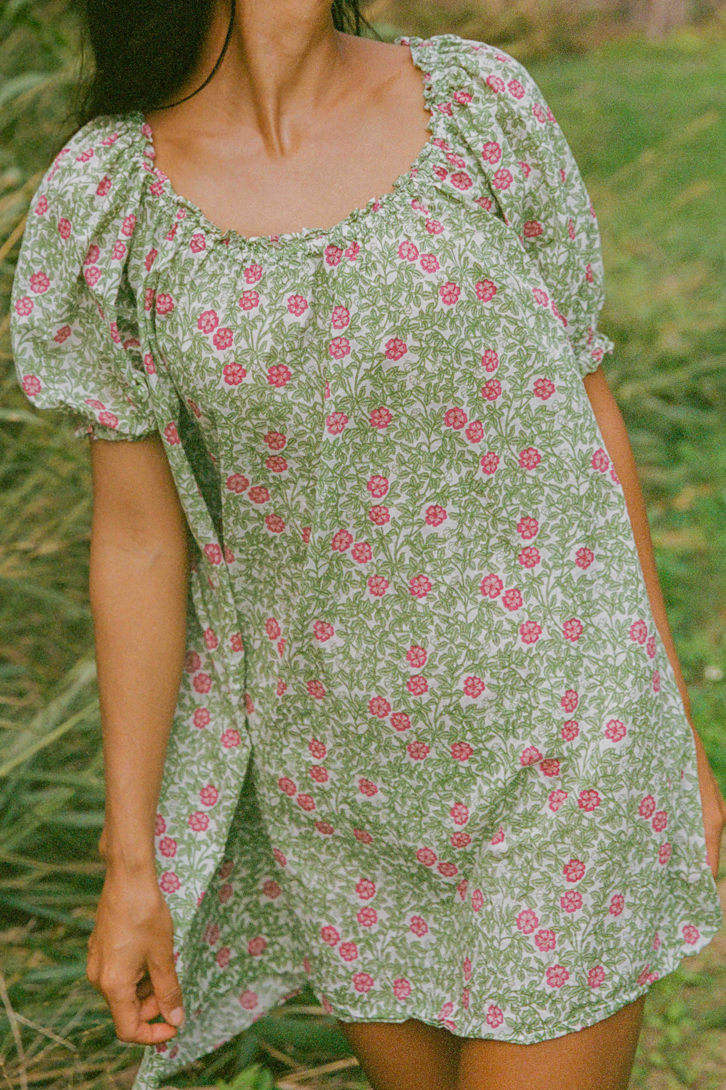 Made from airy cotton voile and inspired by babydoll silhouettes, the Alana Dress drapes in an effortless shape with softly puffed sleeves. Smocking at the sleeve hem and an elastic neckline offer gentle stretch, both trimmed with delicate ruffles for a feminine finish.